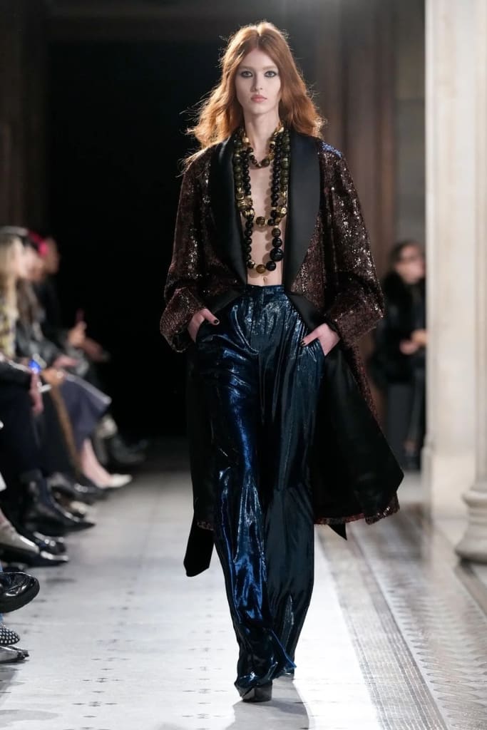 For the Nina Ricci SS26 collection, Reed drew inspiration from rock icons who blurred gender, glamour, and rebellion.